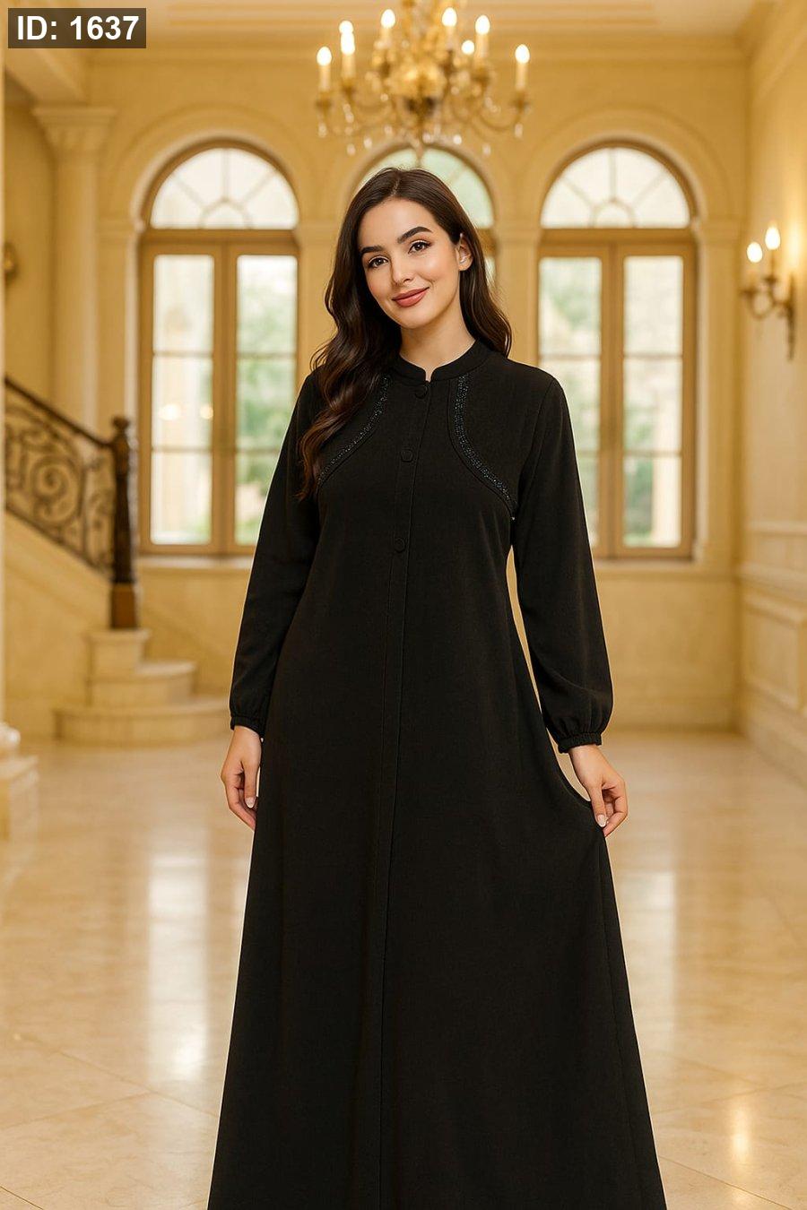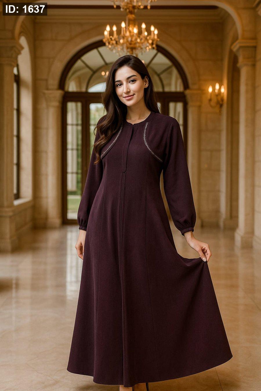 تألقي بإطلالة راقية مع هذا الجلباب الشتوي الفخم المصنوع من خامة شيمواه ناعمة ودافئة تمنحك الأناقة والراحة في نفس الوقت. يتميز بتفاصيل تطريز ناعمة حول الصدر، وقَصّة واسعة محتشمة تناسب جميع الأذواق والمقاسات (من نمره 38 حتى 60).