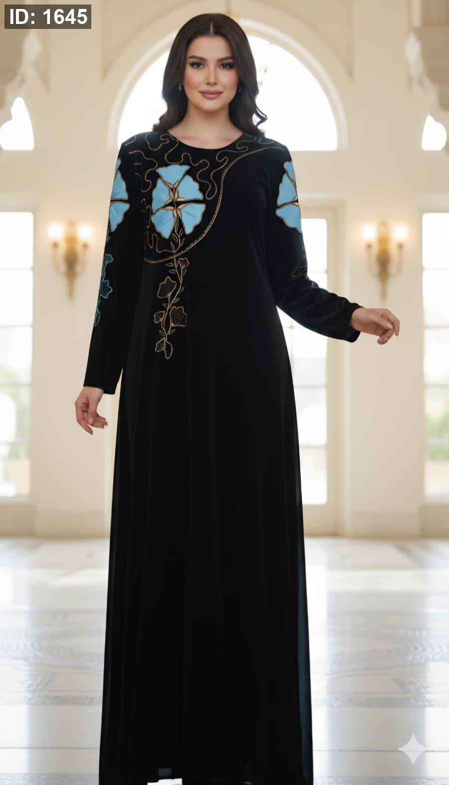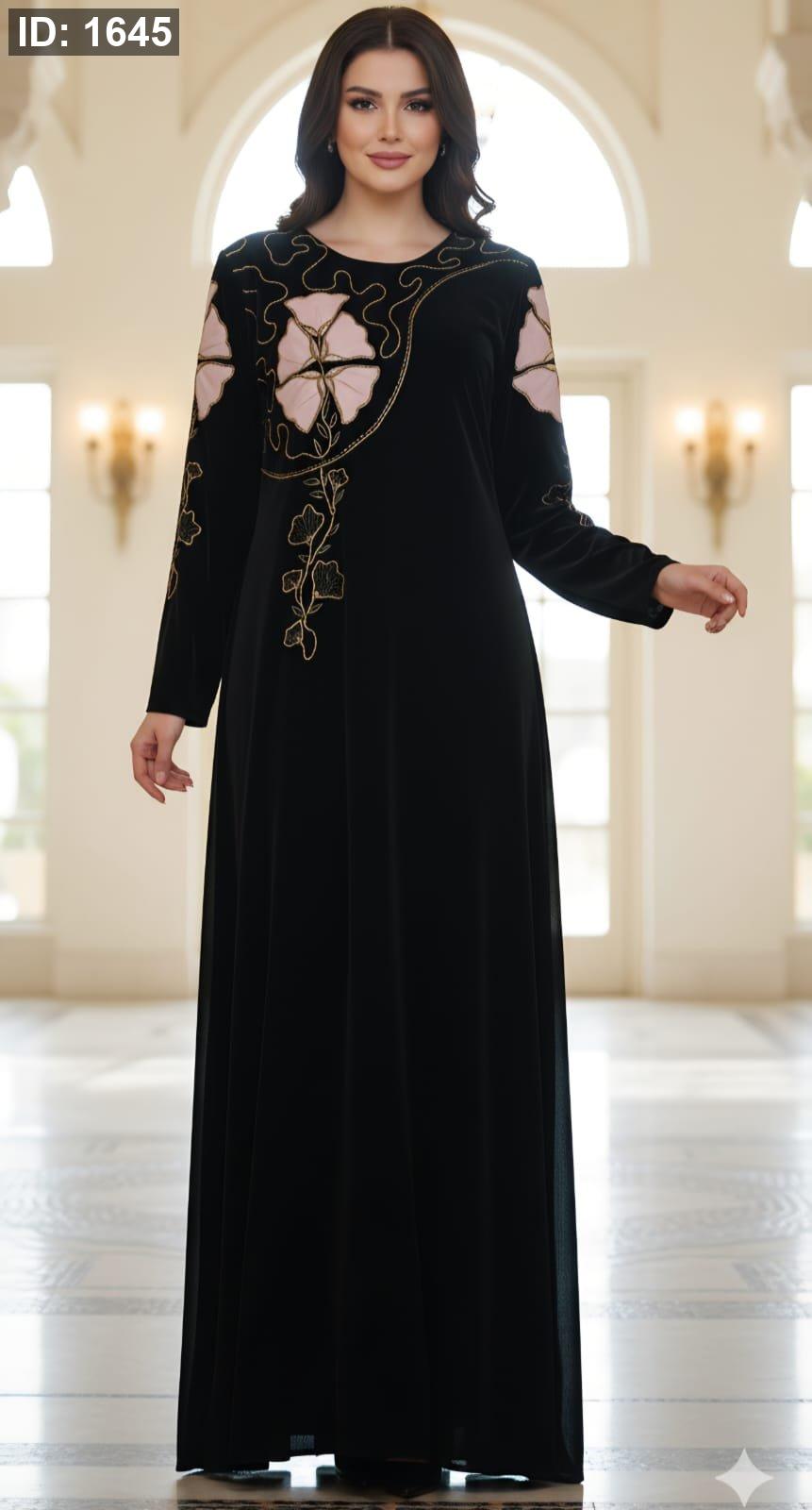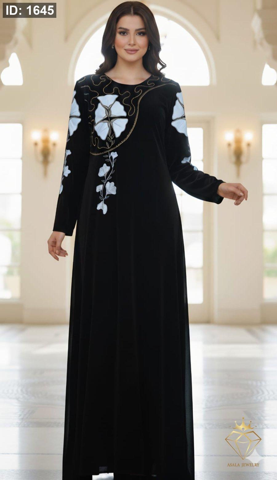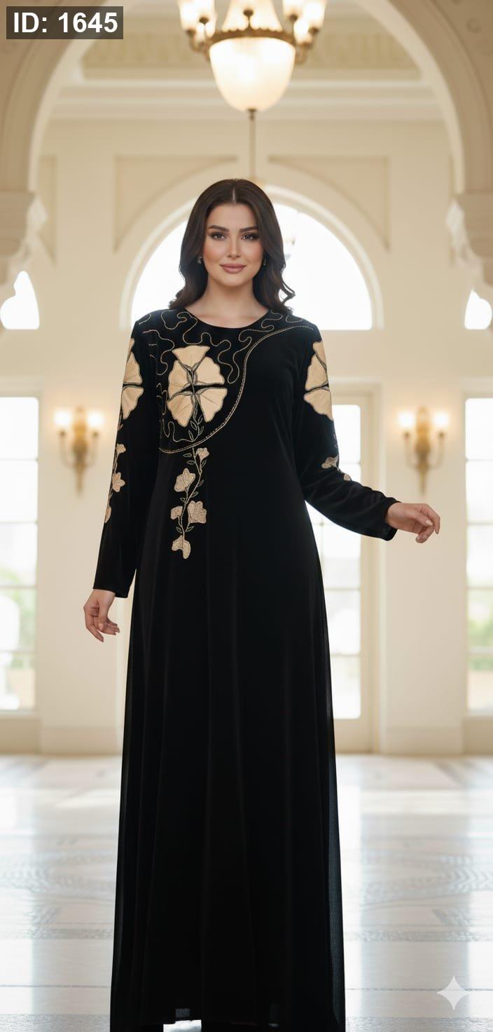 أضيفي لمسة من الأناقة الراقية إلى إطلالتك مع هذا الفستان الأسود الأنيق والمصمم بعناية. يتميز الفستان بقصة فضفاضة ومريحة تمنحك حرية الحركة وتبرز جمالك الطبيعي، وتزينه تطريزات زهرية فاخرة تضفي عليه طابعًا فريدًا وجذابًا.