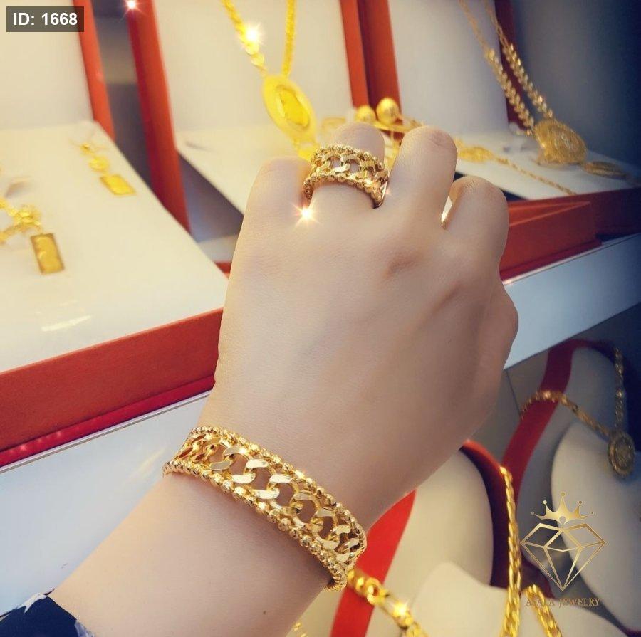 هل تبحث عن مجوهرات بديل الذهب تبدو وتلمع تمامًا كالذهب الحقيقي؟ نقدم لك طقم سلسلة الكُرميه العريضة الأنيق، الذي يجمع بين السوار الذهبي الفاخر والخاتم العريض بتصميم الكبح (Cuban/Curb Chain) الشهير.