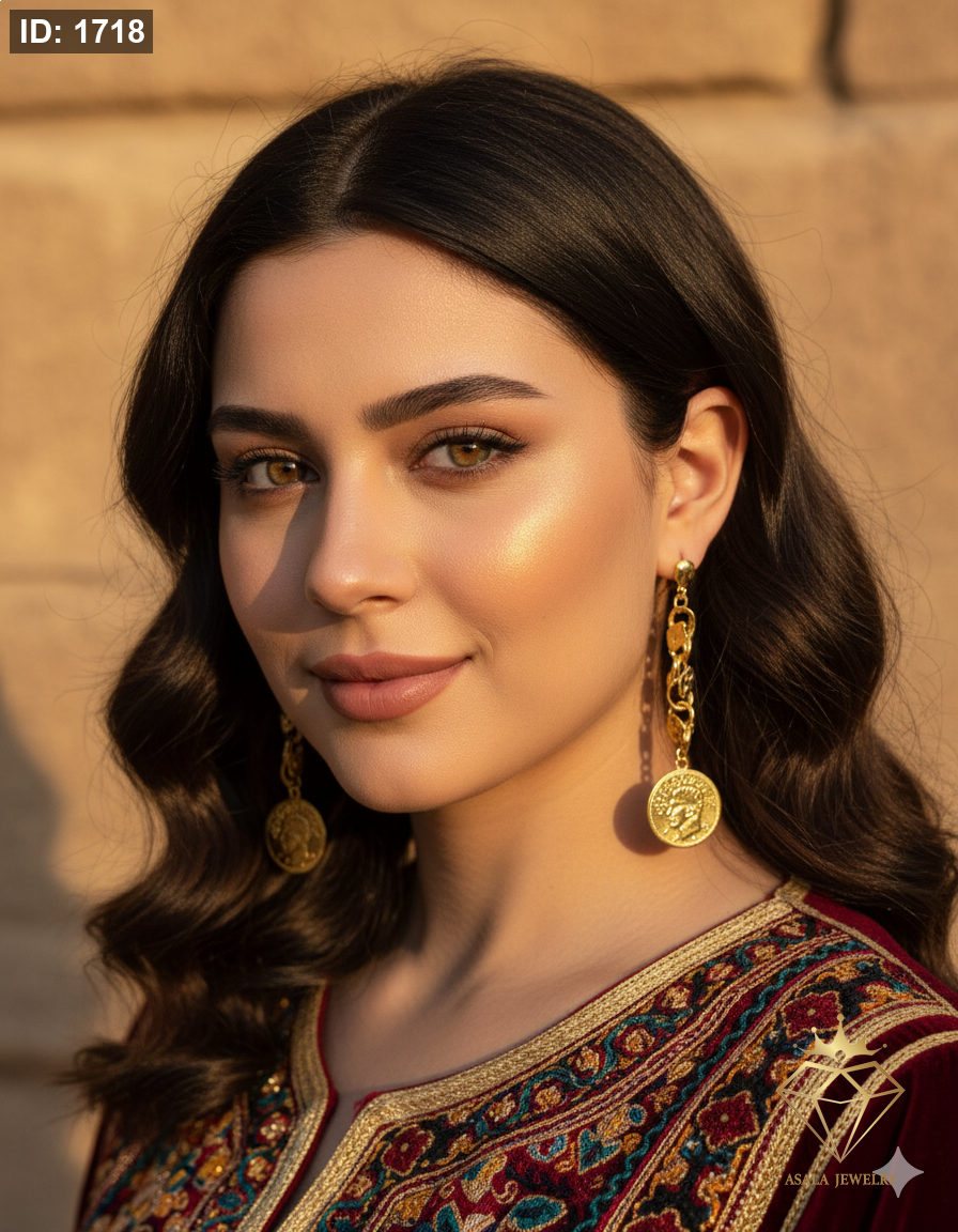 تميّزي بإطلالة تجمع بين الأصالة واللمسة العصرية مع حلق عملات التراث بتصميمه الفاخر المستوحى من العملات الذهبية القديمة.
