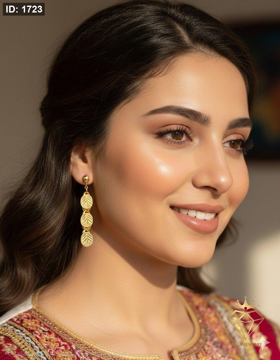 استمتعي بإطلالة تراثية راقية مع حلق السبلات الحلبي المصمم بتفاصيل أوراق ذهبية متدرجة تمنح الوجه لمسة أنثوية ناعمة.
