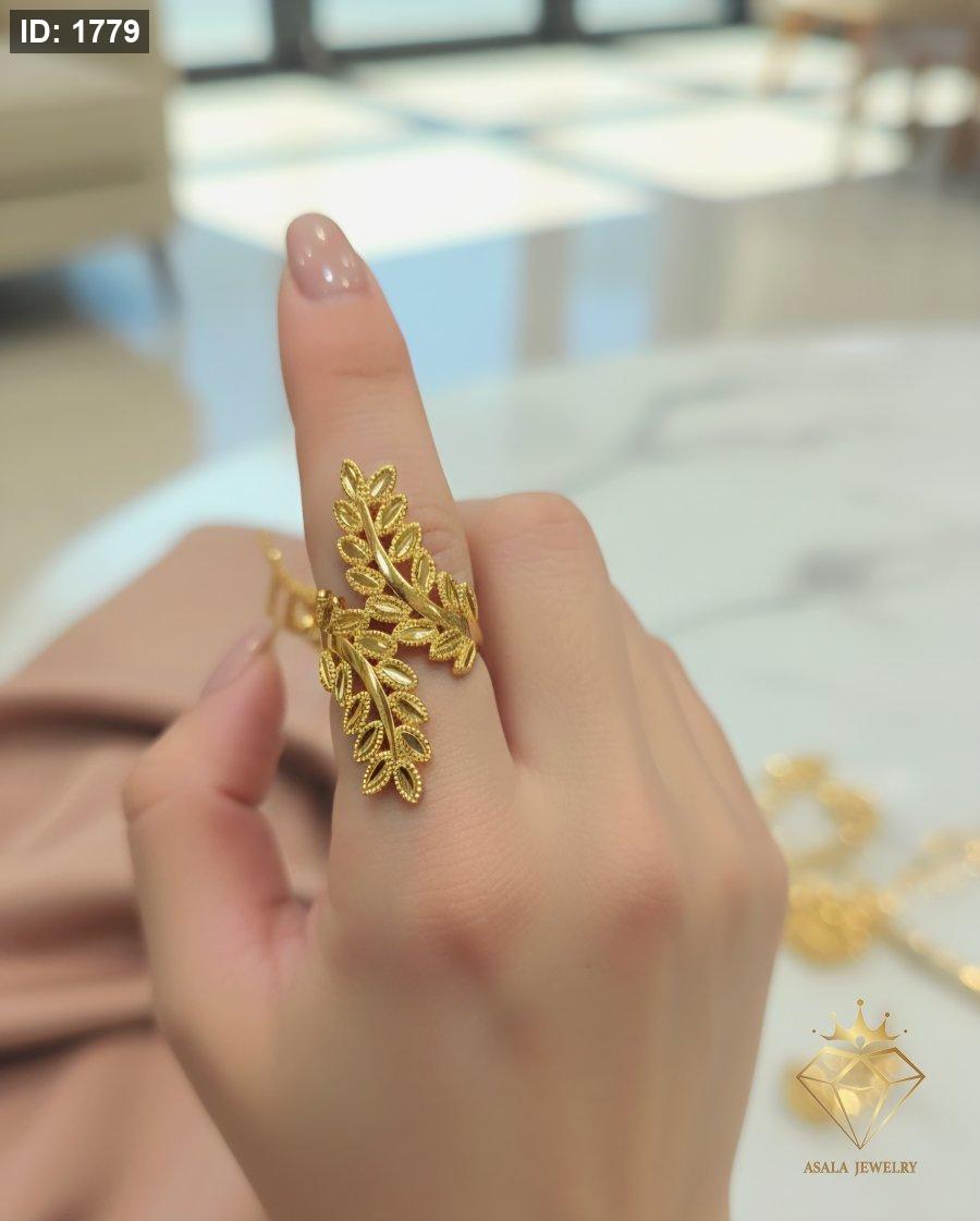 خاتم غصون الفخامة – بديل ذهب بتصميم مستوحى من جمال الطبيعة وتفاصيل الأوراق الرفيعة، ليمنحك إطلالة أنثوية فاخرة بلمعة تشبه الذهب عيار 21 تمامًا.