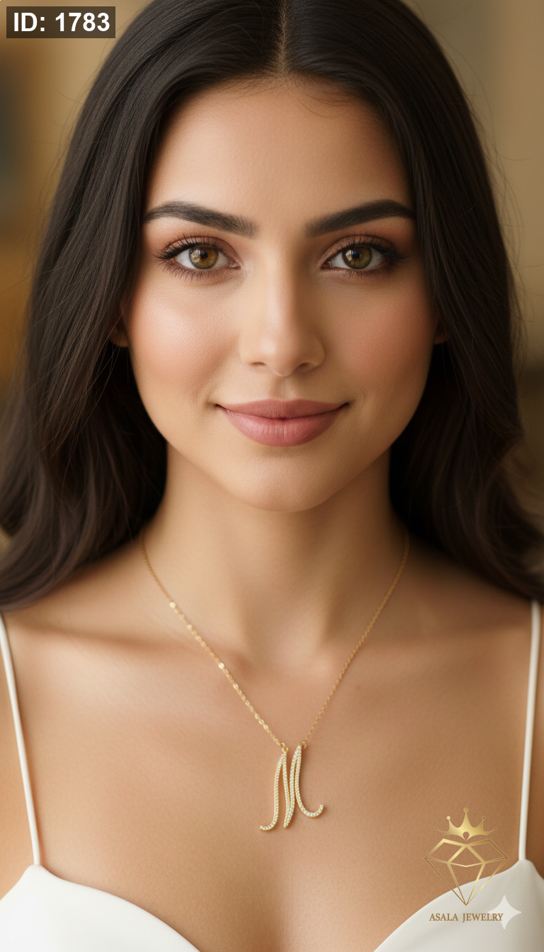 سنسال حرف M الفاخر – بديل ذهب بتصميم أنثوي جذّاب يجمع بين البساطة واللمسة الراقية.