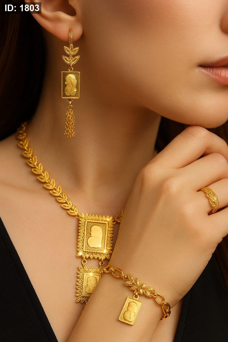 استحضري قوة وأناقة الملكات مع هذه القلادة الذهبية المذهلة التي تعتبر تحفة فنية بحد ذاتها. تتميز القلادة بتصميم طوق عريض ومحبوك بحلقات متشابكة بنقوش دقيقة، يتدلى منها ميدالية ضخمة ومركزية. تتوسط الميدالية نقش Cameo أو صورة بارزة (غالباً ما تكون ملكية أو أسطورية)، محاطة بنقوش هندسية كروية (كشكشة/حبيبات). هذه القلادة هي البيان المثالي الذي يضفي هالة من الفخامة والتميز على أي إطلالة مسائية أو رسمية.