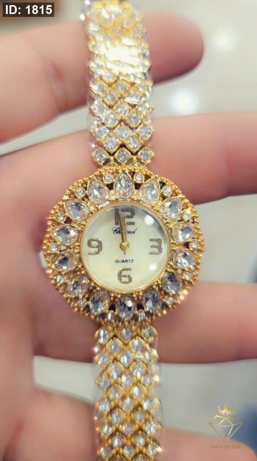 ساعة يد نسائية ومرصعة بالكامل.