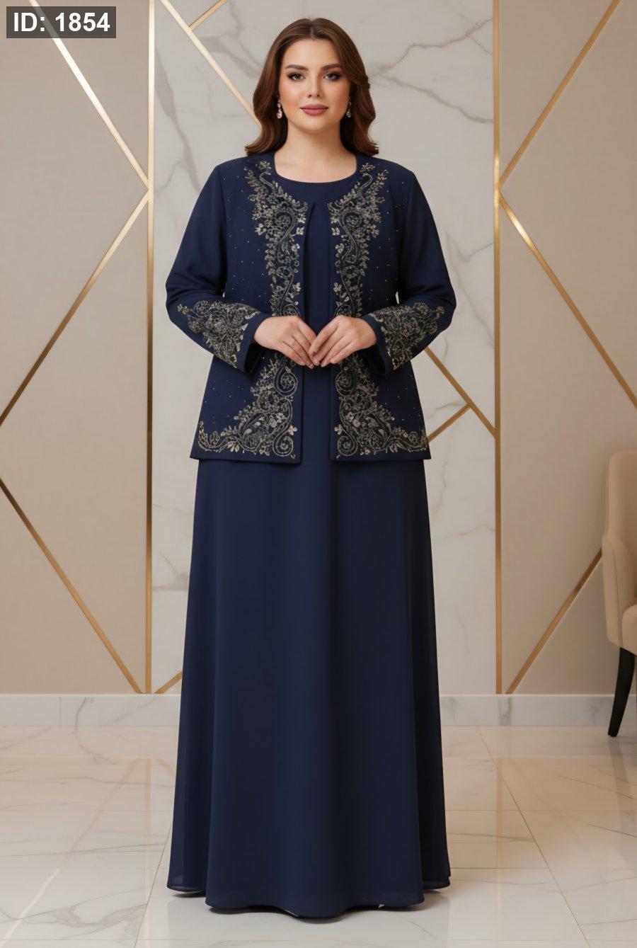 صُمم هذا الطقم الراقي ليجسد مزيجًا مثاليًا من الفخامة العصرية والتصميم المحتشم. إنه القطعة المثالية للمرأة التي تسعى للتميز في حفلات الزفاف، الاستقبالات الرسمية، أو أي مناسبة خاصة. يضمن لك هذا التصميم راحة مطلقة وقصّة تُظهر القوام بأناقة فائقة.