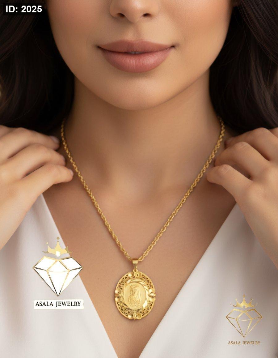 سنسال أونصة، قلادة أونصة دائرية، بديل الذهب، سنسال مطابق للذهب، مجوهرات بديل الذهب، سنسال ذهبي نسائي، أونصة مزخرفة، قلادة تراثية