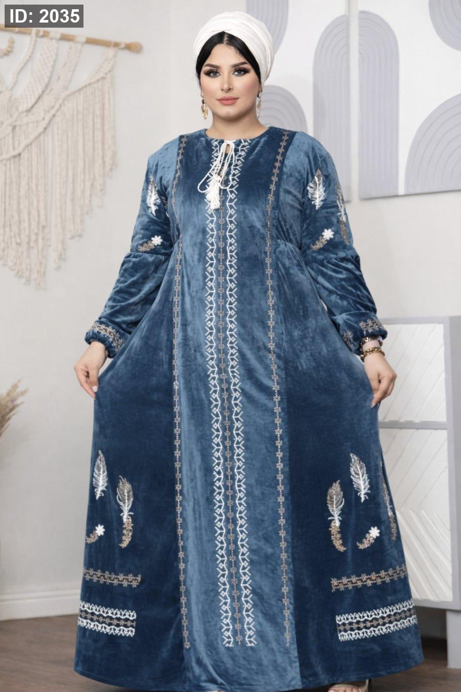 أضيفي لمسة من السحر والوقار إلى خزانة ملابسك مع هذه الـ جلابية المخملية الفاخرة باللون الأزرق النيلي. صُممت هذه القطعة لتمنحكِ إطلالة ملكية بلمسات عصرية فريدة، حيث يجتمع فيها دفء المخمل مع دقة التطريز الأبيض والذهبي ليخلقا لوحة فنية تعبر عن ذوقك الرفيع.