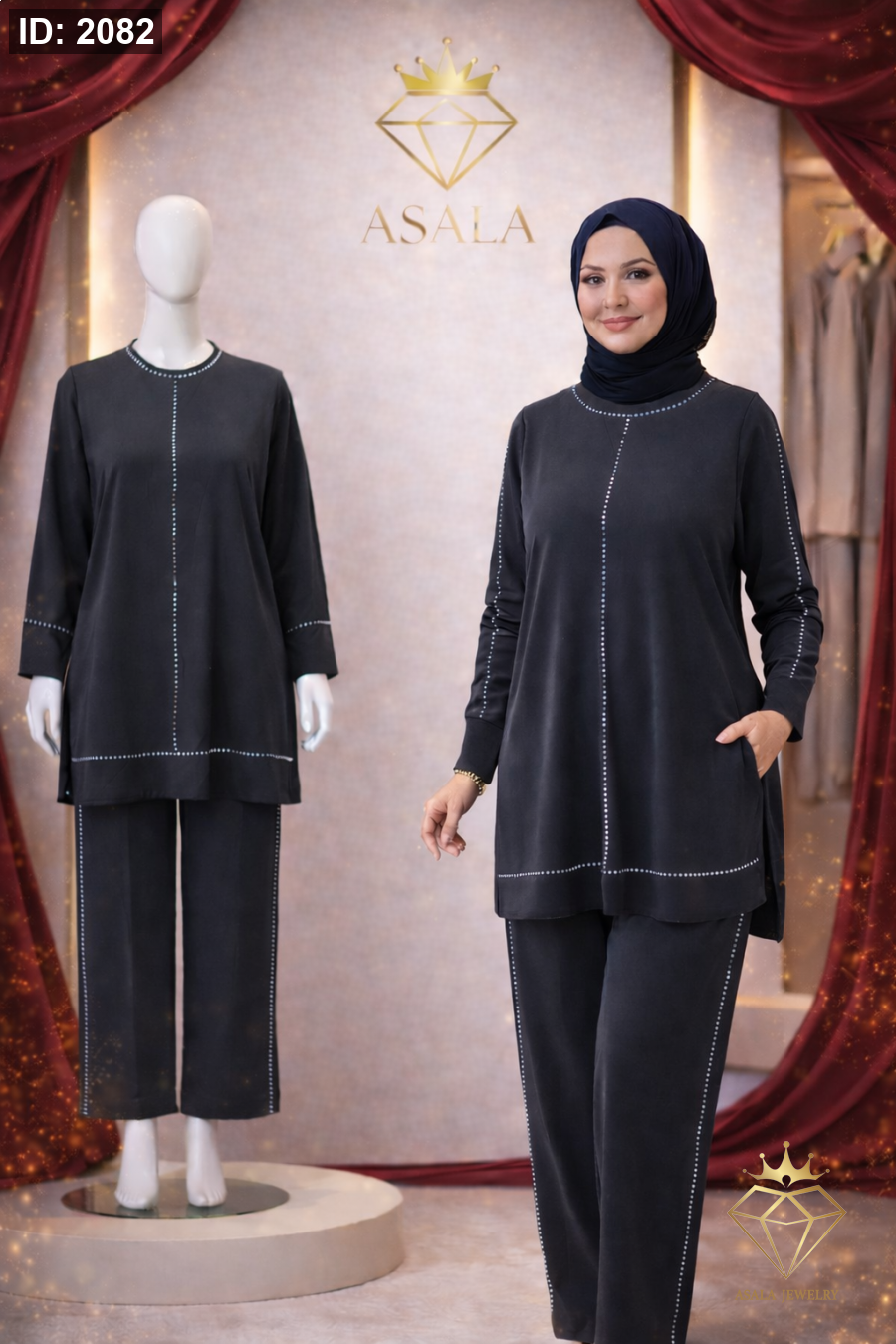 طقم مميز يجمع بين الأناقة والراحة في آنٍ واحد، تصميم عصري بقصة واسعة تناسب جميع الإطلالات اليومية والمناسبات الخفيفة.
