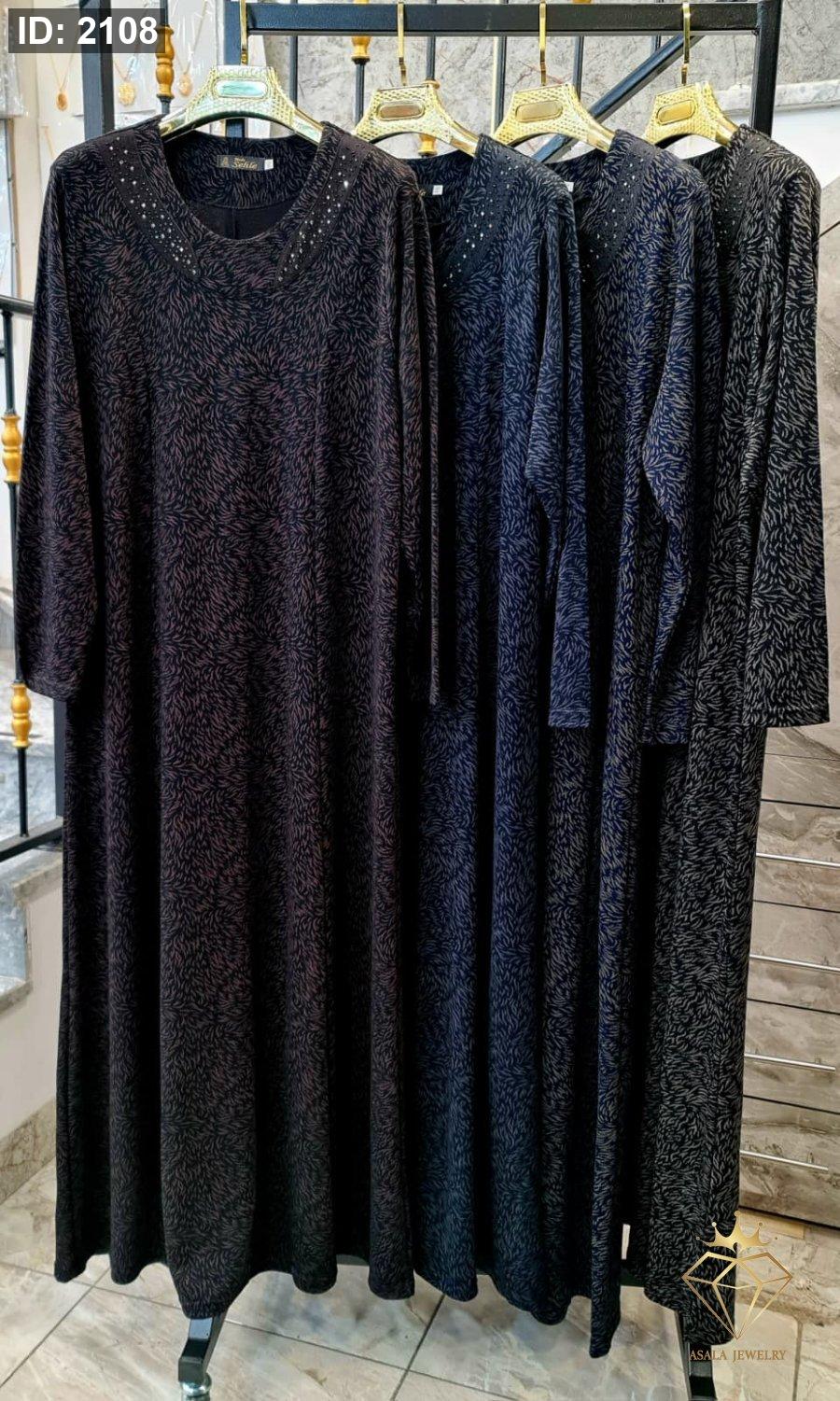الياقة مزينة بتفاصيل لامعة دقيقة تضفي لمسة أنثوية أنيقة تعزز جمال الإطلالة، بينما القصة الانسيابية تجعله مثالياً للاستخدام اليومي والزيارات والمشاوير.